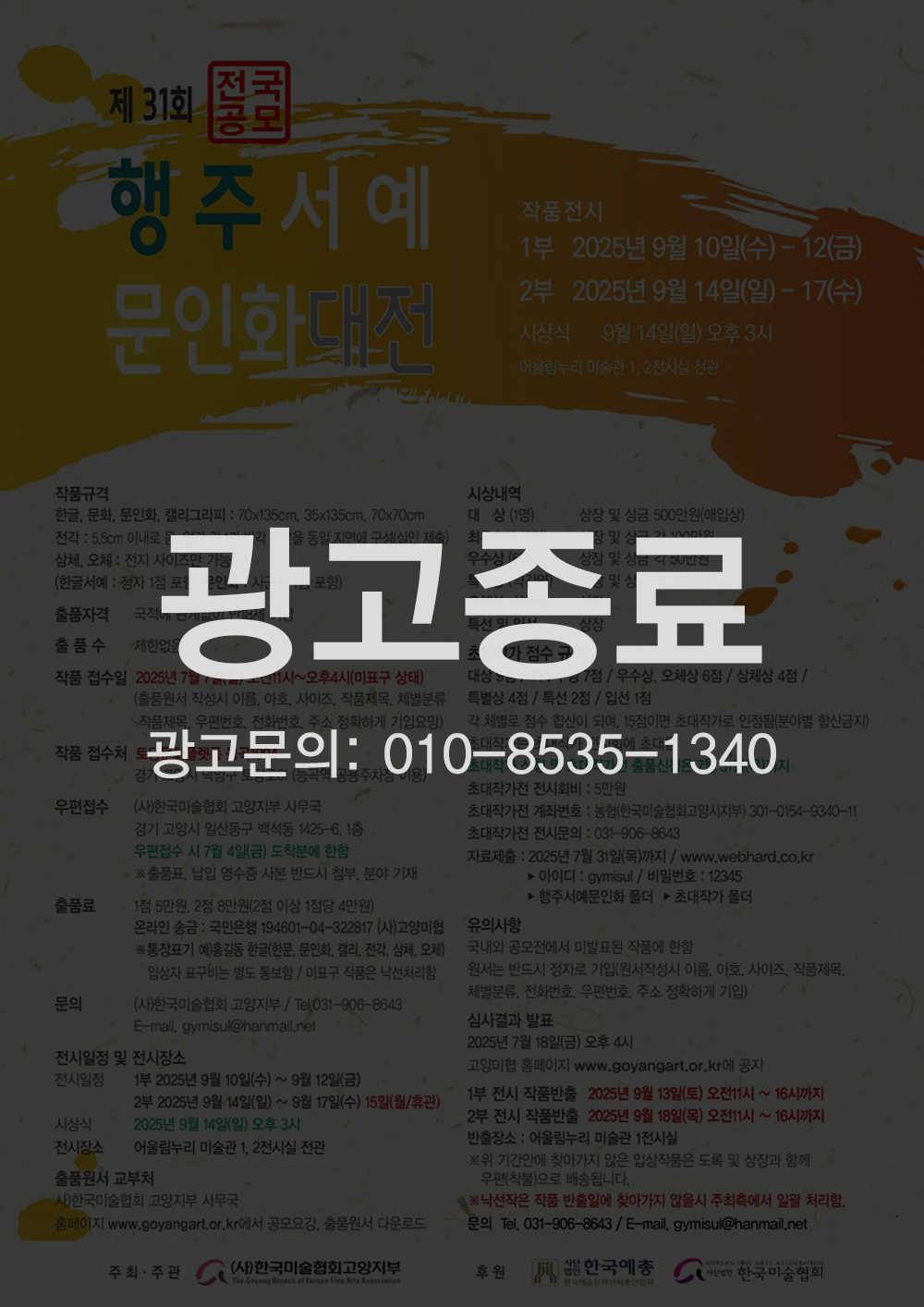 입상자 표구비는 별도 통보함 / 미표구 작품은 낙선처리함