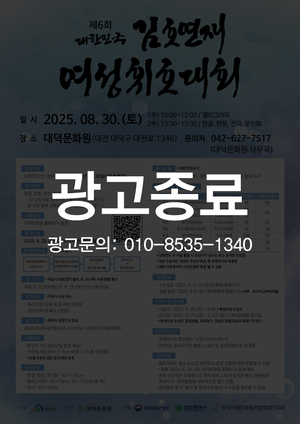 제6회 대한민국 김호연재 여성휘호대회 / 일시 2025.8.30.(토) |