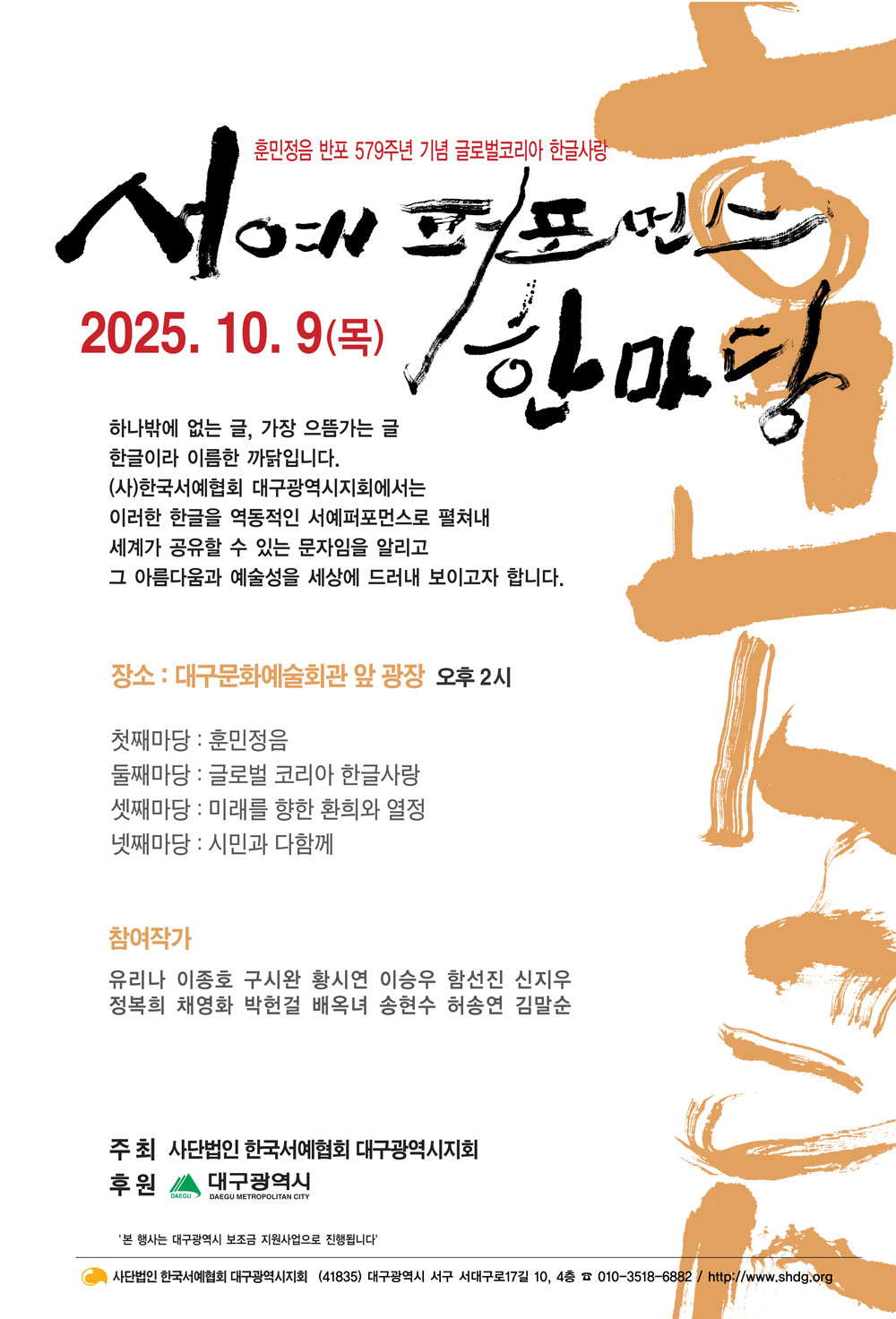 서예 퍼포먼스 한마당 / 행사 10.9.(목) |