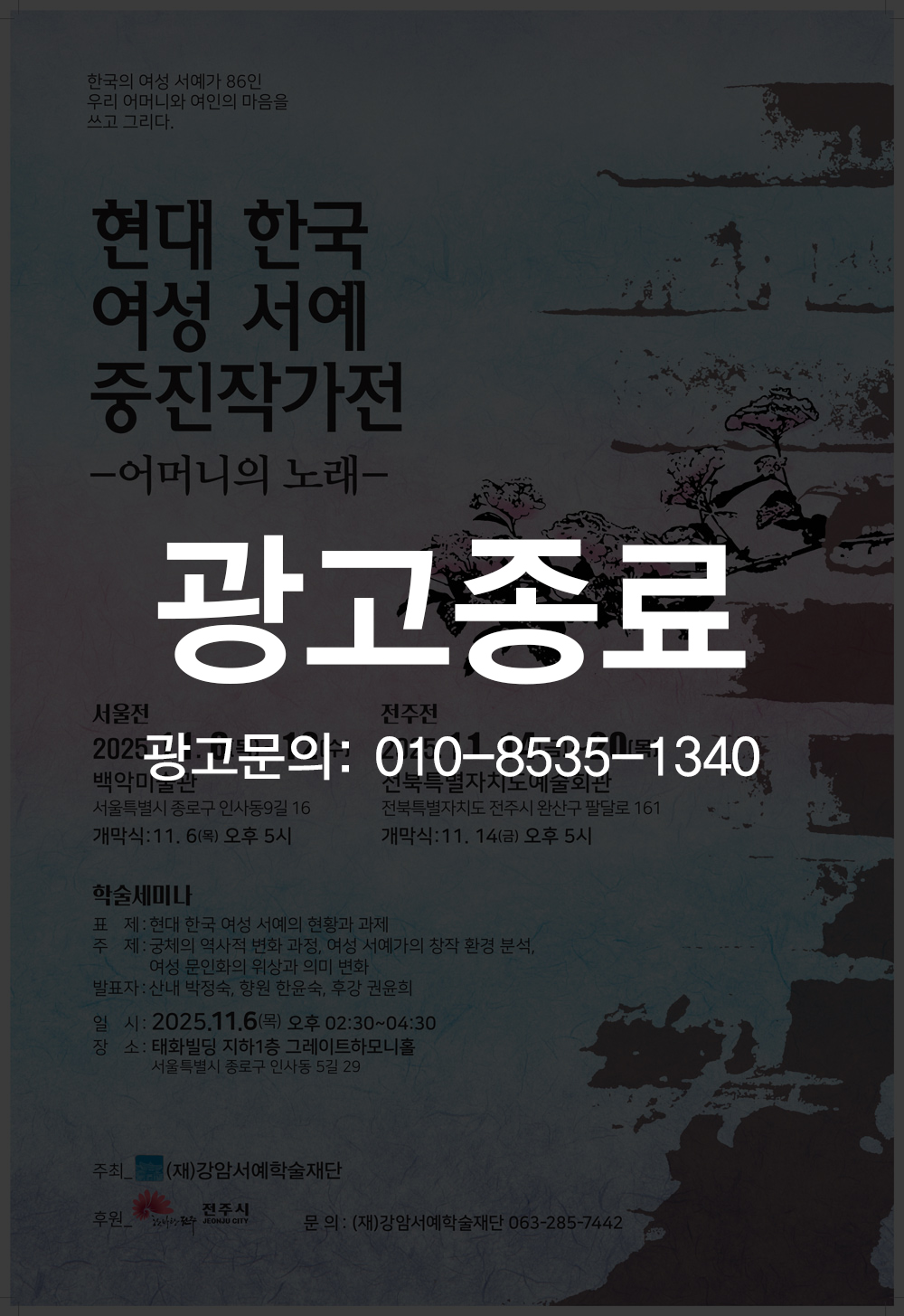 현대 한국 여성 서예 중진작가전 –어머니의 노래- / 서울전: 11.6-12, 전주전: 11.14-20 |