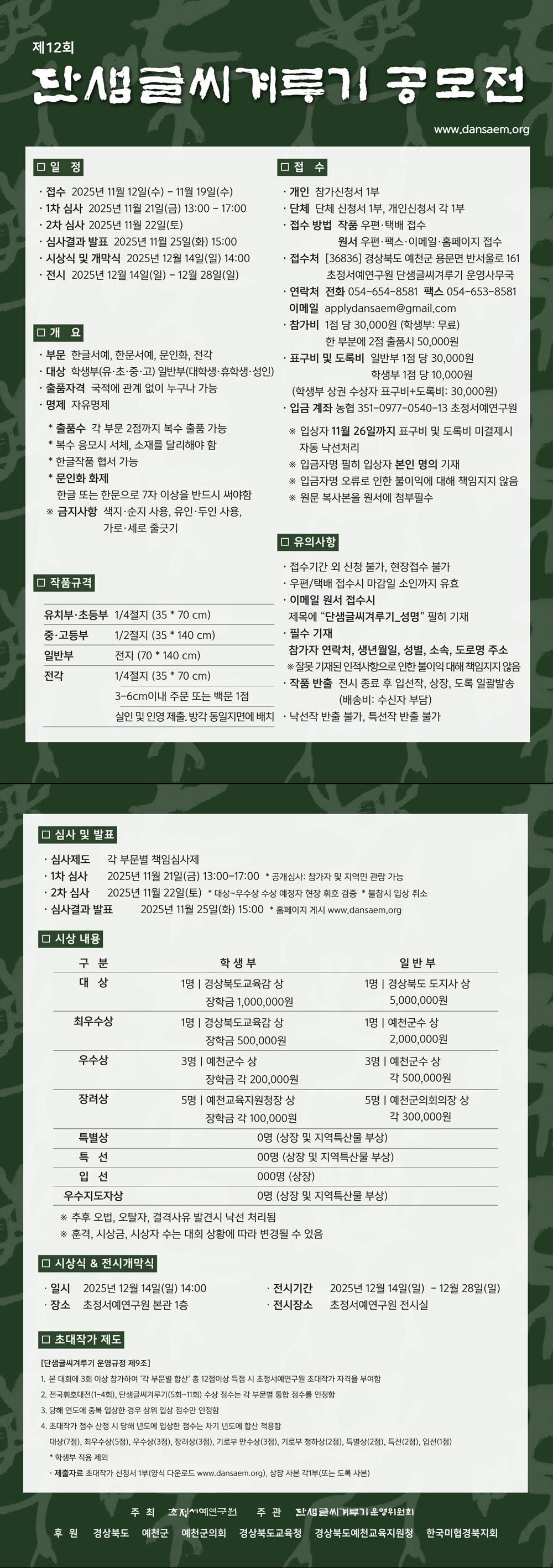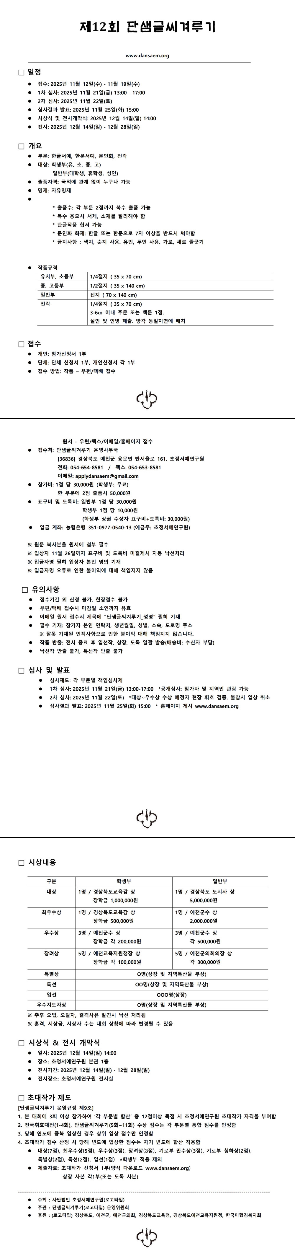 제12회 단샘글씨겨루기 공모전 / 접수: 11.12-19