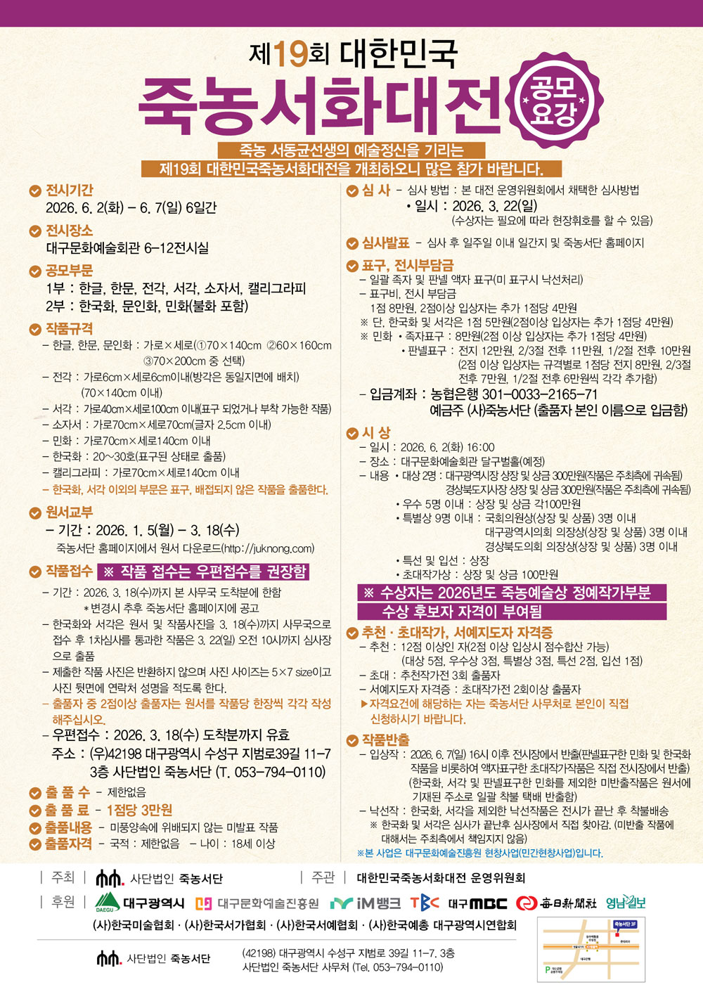 #문의: 사단법인 죽농서단 사무처(053-794-0110)