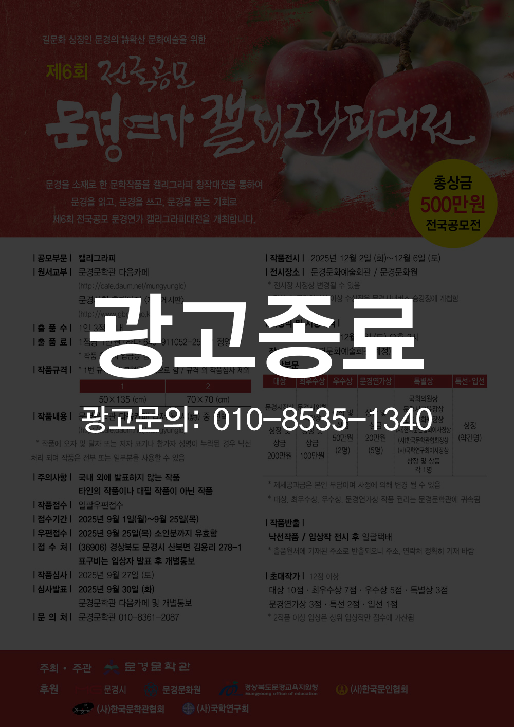 제6회 전국공모 문경연가 캘리그라피대전 / 접수: 9.01~9.25 |